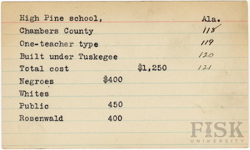 - School card from Rosenwald Fund for High Pine School in Chambers County, Alabama