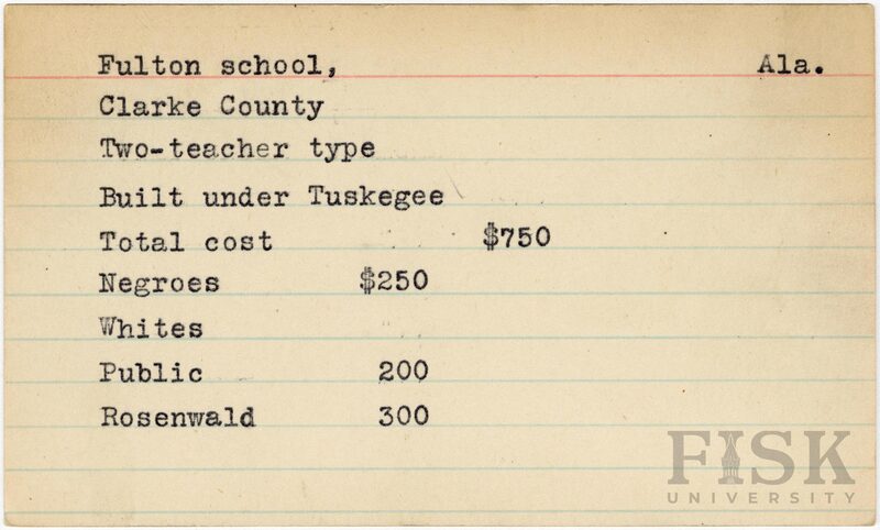 - School card from Rosenwald Fund for Fulton School in Clarke County, Alabama