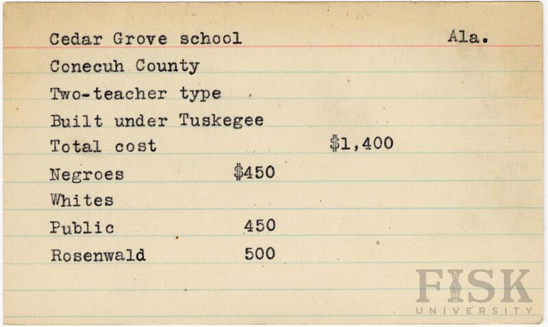 - School card from Rosenwald Fund for Cedar Grove School in Conecuh County, Alabama