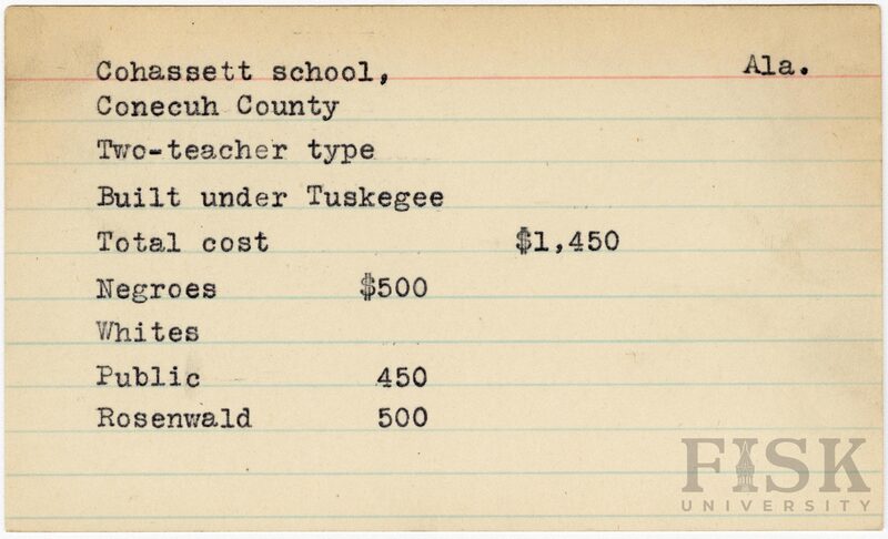 - School card from Rosenwald Fund for Cohassett School in Conecuh County, Alabama
