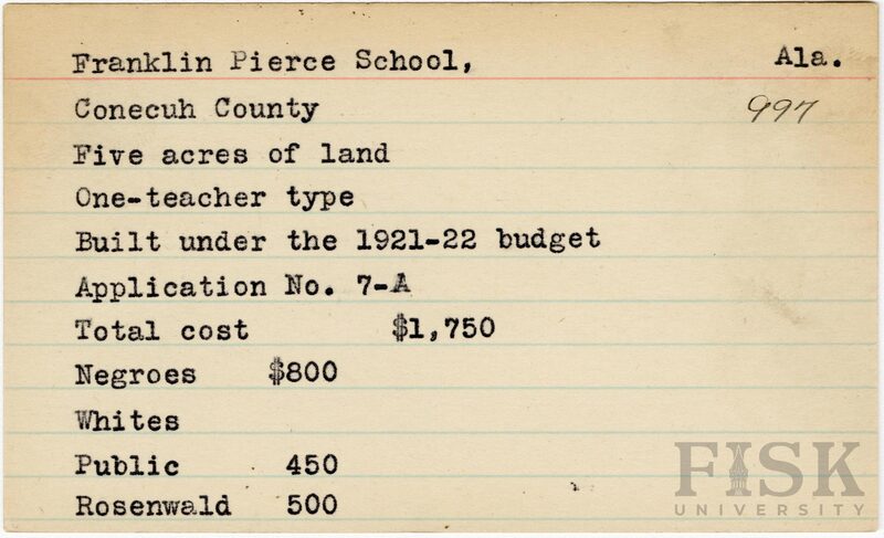 - School card from Rosenwald Fund for Franklin Pierce School in Conecuh County, Alabama