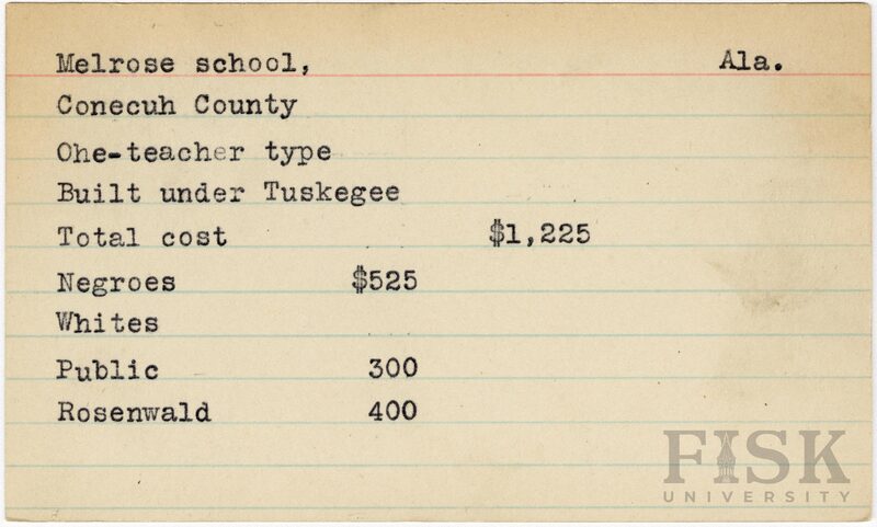 - School card from Rosenwald Fund for Melrose School in Conecuh County, Alabama