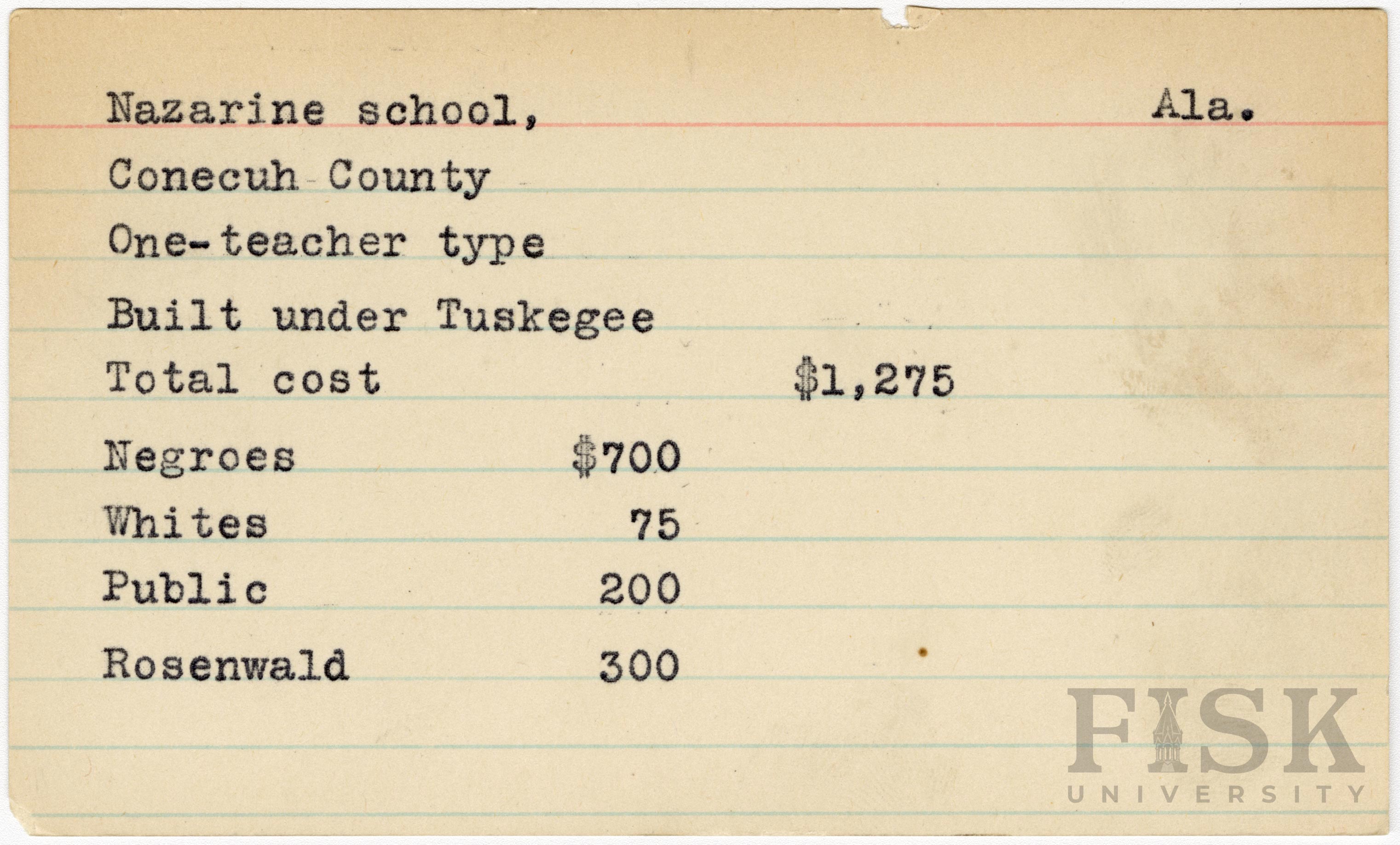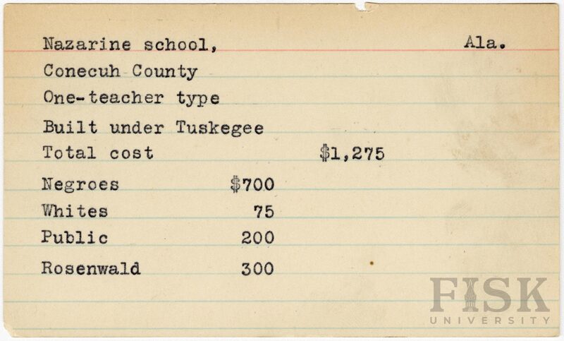 - School card from Rosenwald Fund for Nazarine School in Conecuh County, Alabama