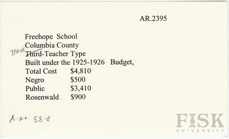 - School card from Rosenwald Fund for Freehope School in Columbia County, Arkansas