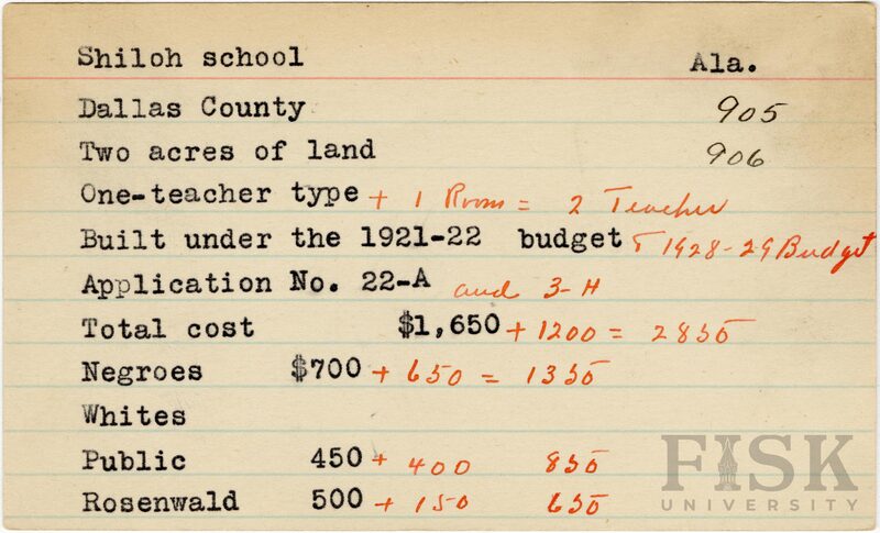 - Rosenwald Fund Card File, The Julius Rosenwald Fund Archives, 1918-1948, John Hope and Aurelia E. Franklin Library