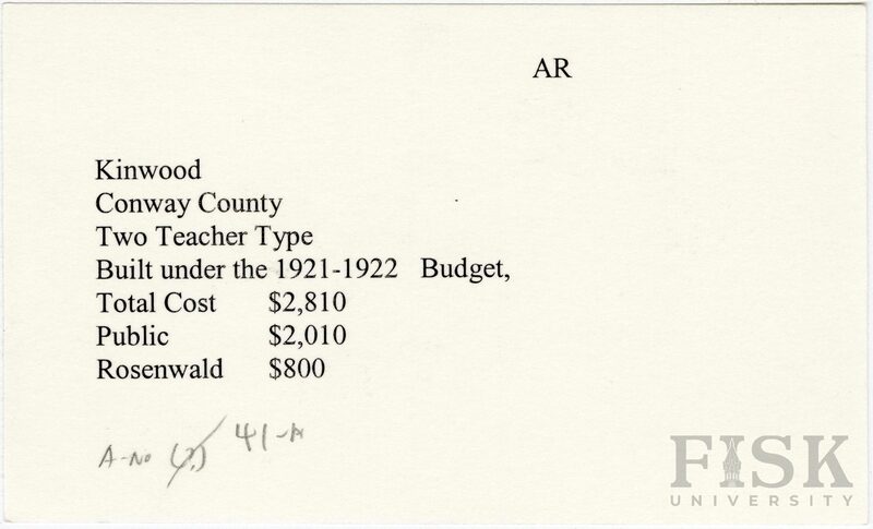 - School card from Rosenwald Fund for Kinwood School in Conway County, Arkansas