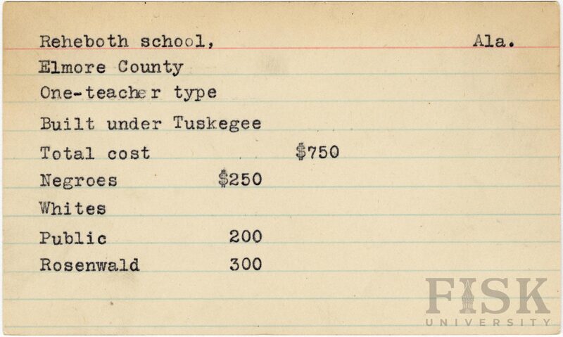 - School card from Rosenwald Fund for Reheboth School in Elmore County, Alabama