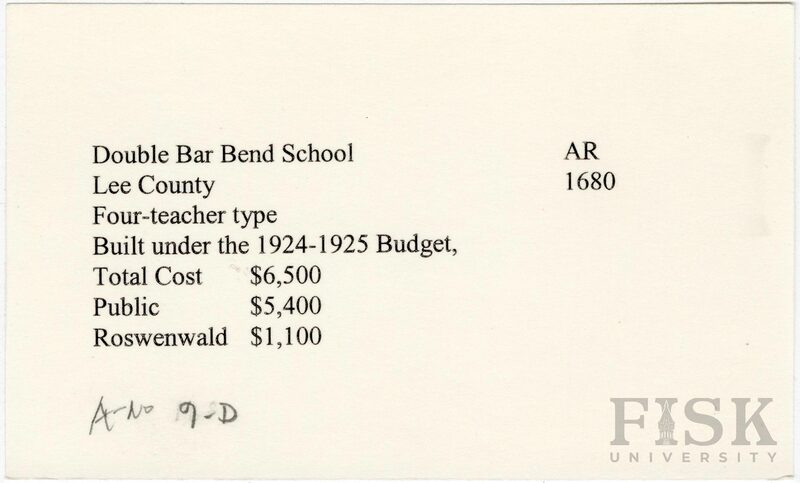 - School card from Rosenwald Fund for Double Bar Bend School in Lee County, Arkansas