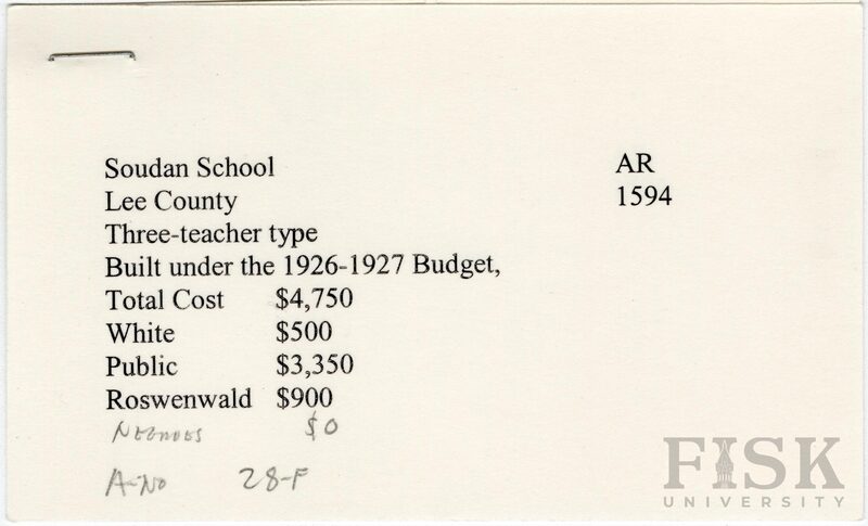 - School card from Rosenwald Fund for Soudan School in Lee County, Arkansas
