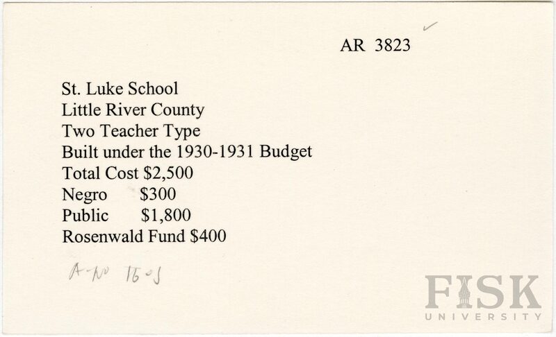 - School card from Rosenwald Fund for St. Luke School in Little River County, Arkansas