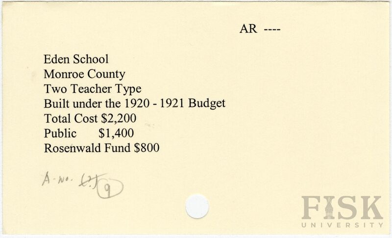 - School card from Rosenwald Fund for Eden School in Monroe County, Arkansas