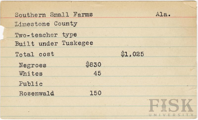 - School card from Rosenwald Fund for Southern Small Farms School in Limestone County, Alabama