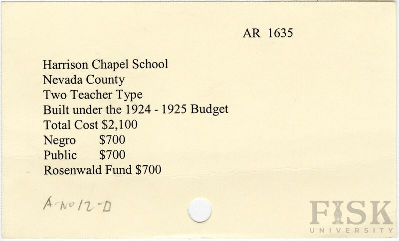 - School card from Rosenwald Fund for Harrison Chapel School in Nevada County, Arkansas