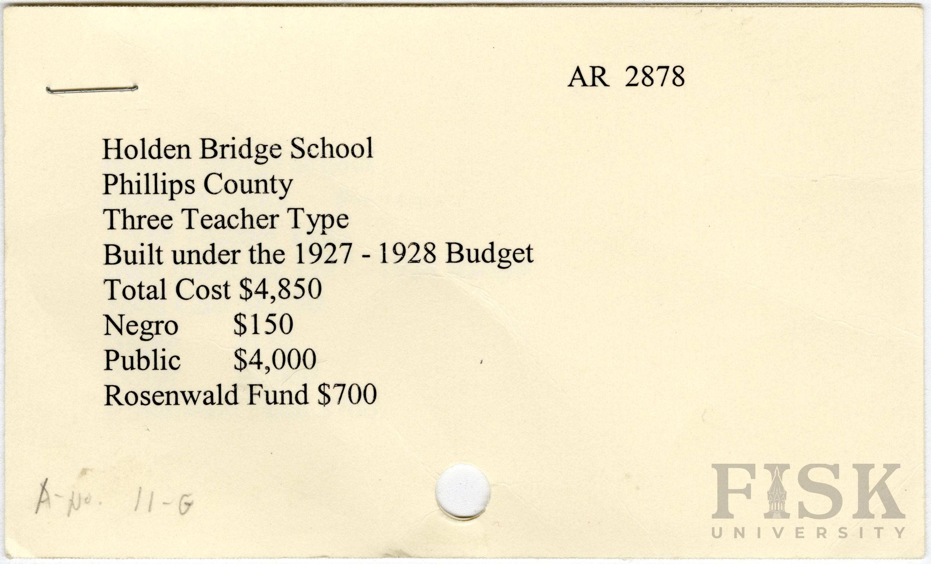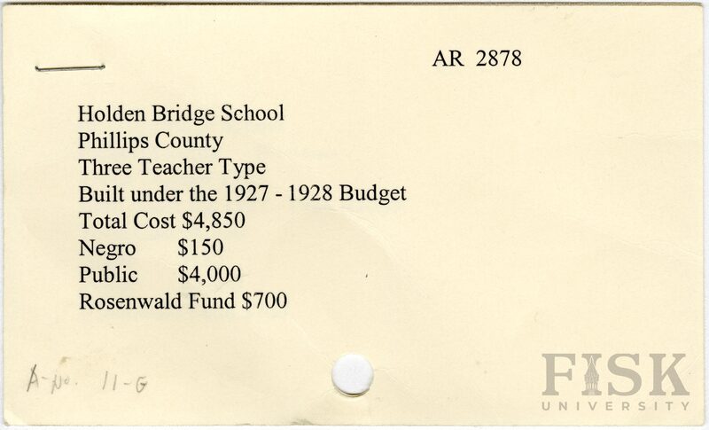 - School card from Rosenwald Fund for Holden Bridge School in Phillips County, Arkansas