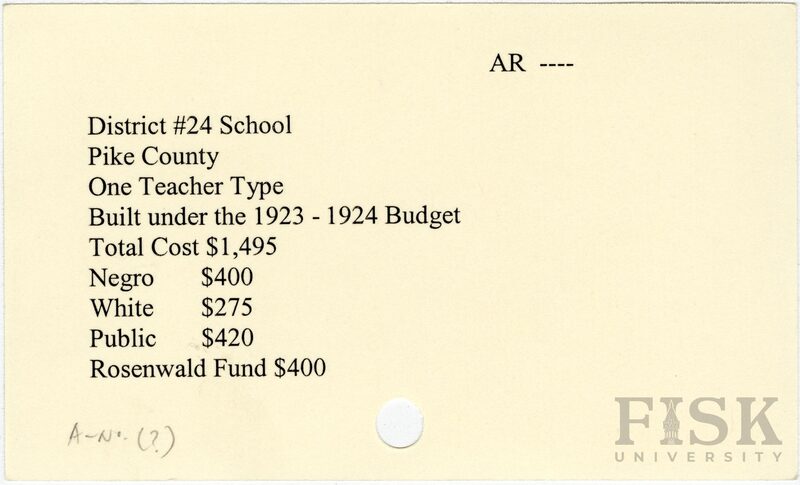 - School card from Rosenwald Fund for District No. 24 School in Pike County, Arkansas