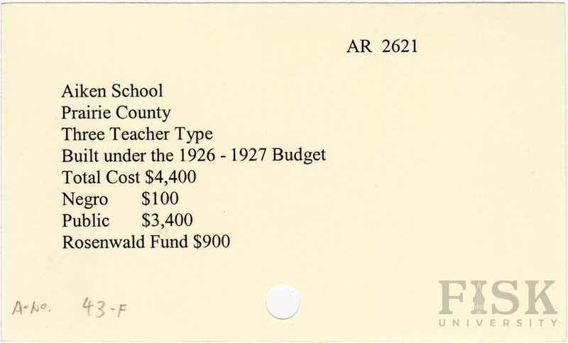 - School card from Rosenwald Fund for Aiken School in Prairie County, Arkansas
