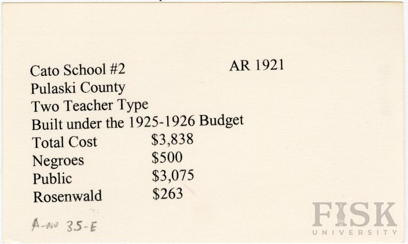 - School card from Rosenwald Fund for Cato School No. 2 in Pulaski County, Arkansas