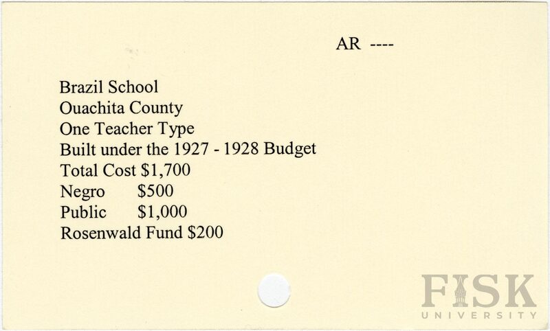 - School card from Rosenwald Fund for Brazil School in Ouachita County, Arkansas