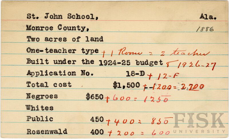 - Rosenwald Fund Card File, The Julius Rosenwald Fund Archives, 1918-1948, John Hope and Aurelia E. Franklin Library