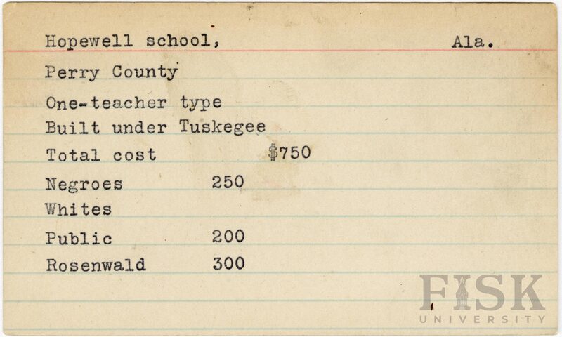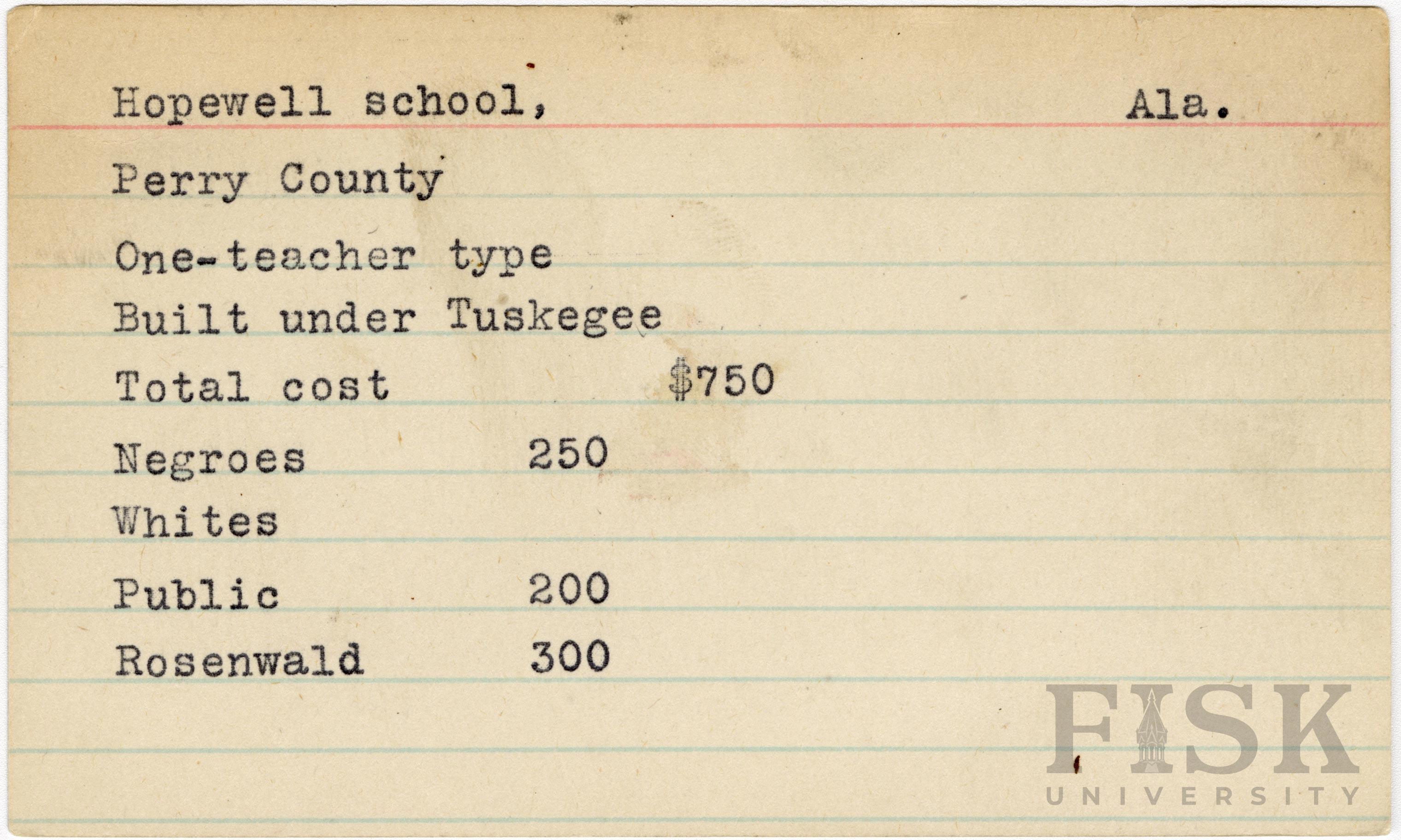 - School card from Rosenwald Fund for Hopewell School in Perry County, Alabama