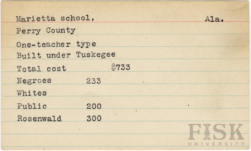 - School card from Rosenwald Fund for Marietta School in Perry County, Alabama
