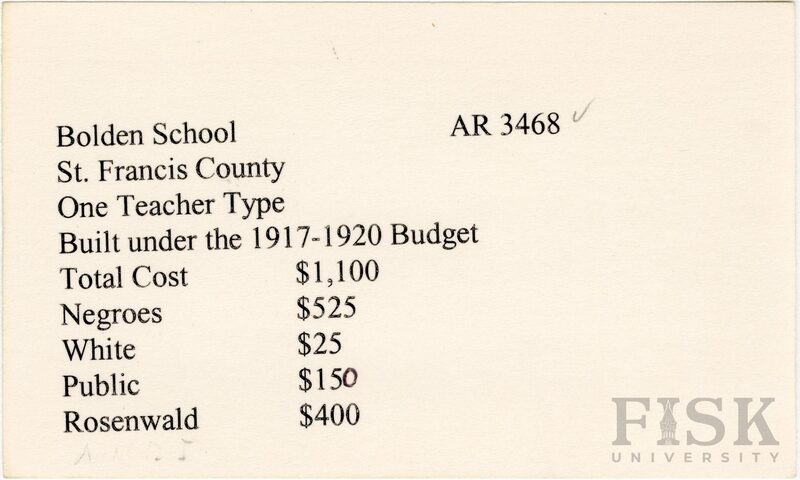 - School card from Rosenwald Fund for Bolden School in St. Francis County, Arkansas
