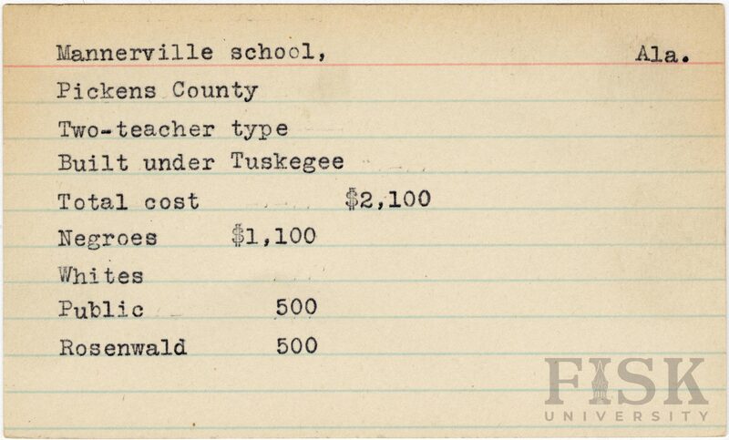 - School card from Rosenwald Fund for Mannerville School in Pickens County, Alabama