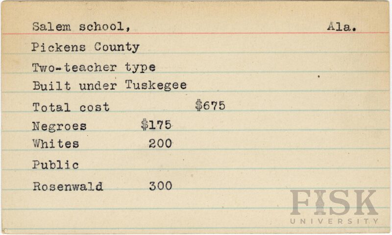 - School card from Rosenwald Fund for Salem School in Pickens County, Alabama