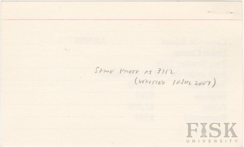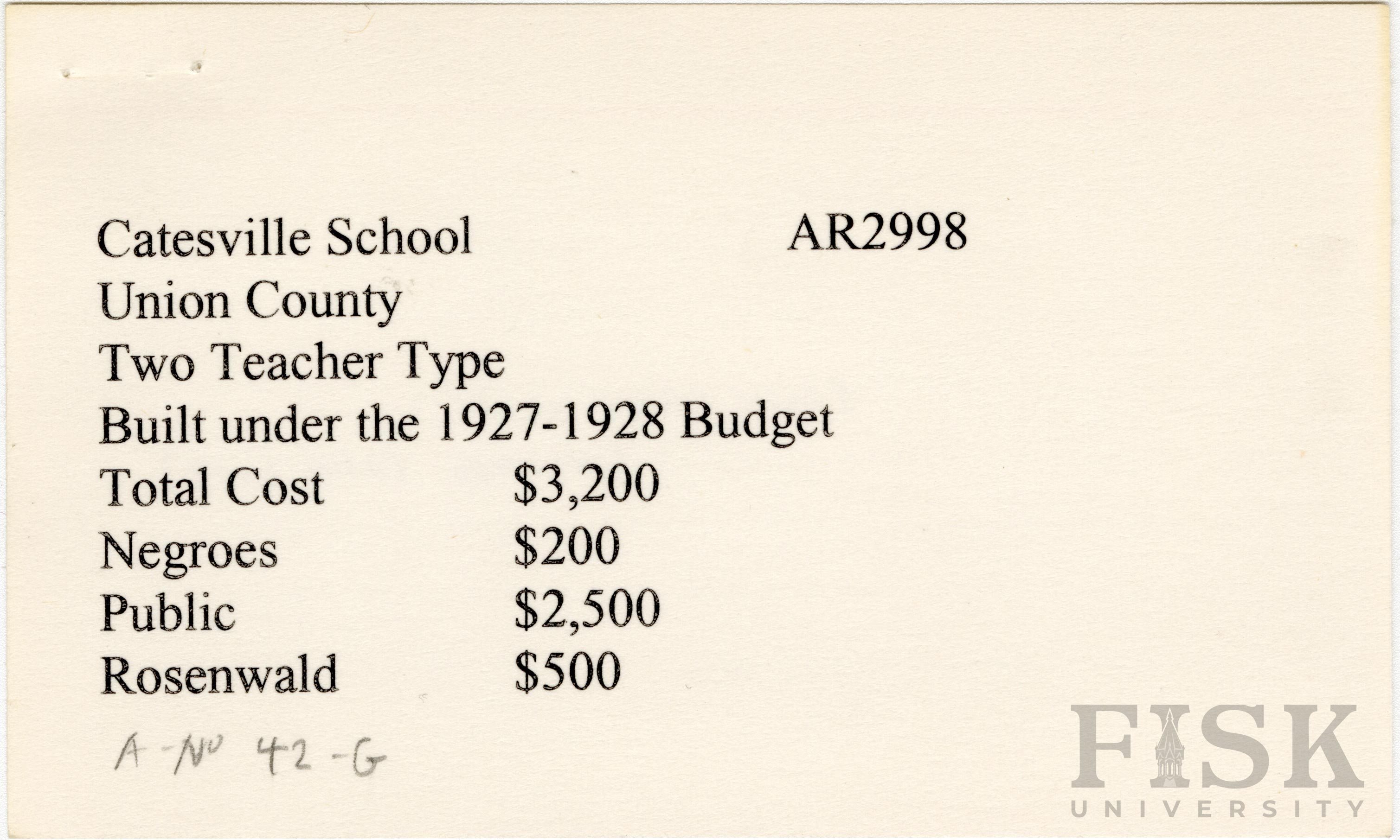 School card from Rosenwald Fund for Catesville School in Union County, Arkansas