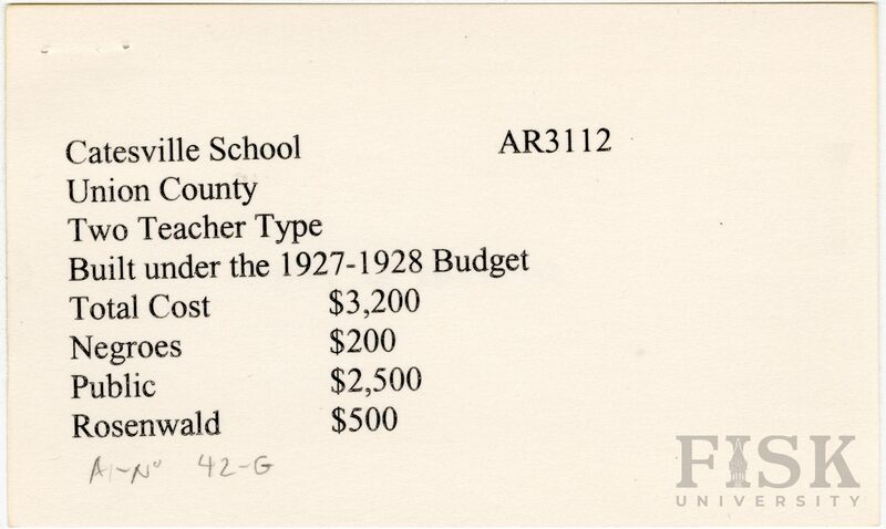 - School card from Rosenwald Fund for Catesville School in Union County, Arkansas