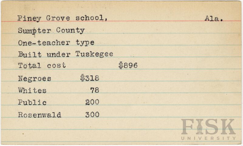 - School card from Rosenwald Fund for Piney Grove School in Sumter County, Alabama