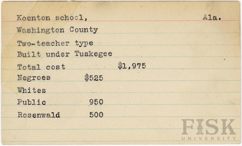 - School card from Rosenwald Fund for Koenton School in Washington County, Alabama
