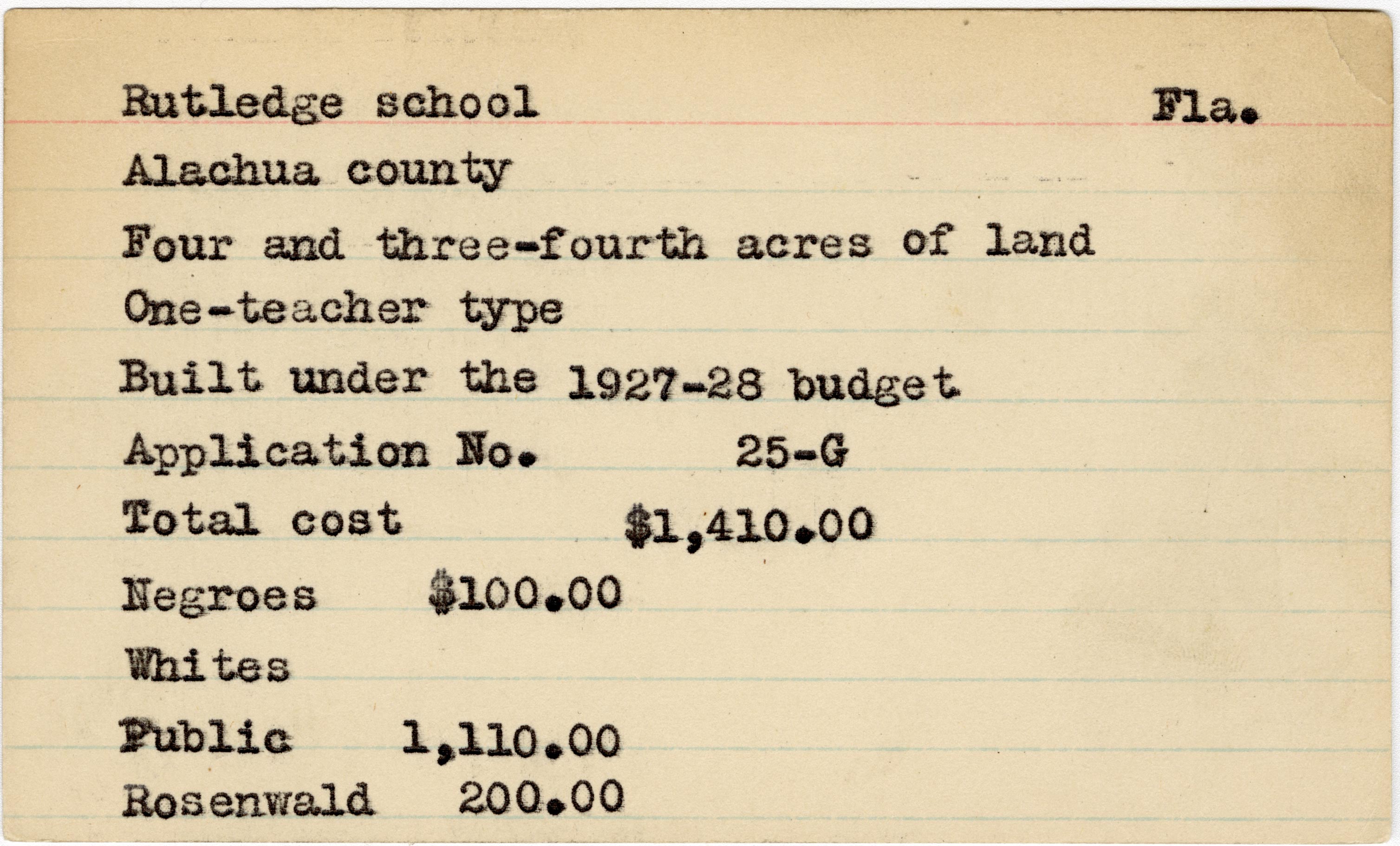 - School card from the Rosenwald Fund for Rutledge School in Alachua County, Florida