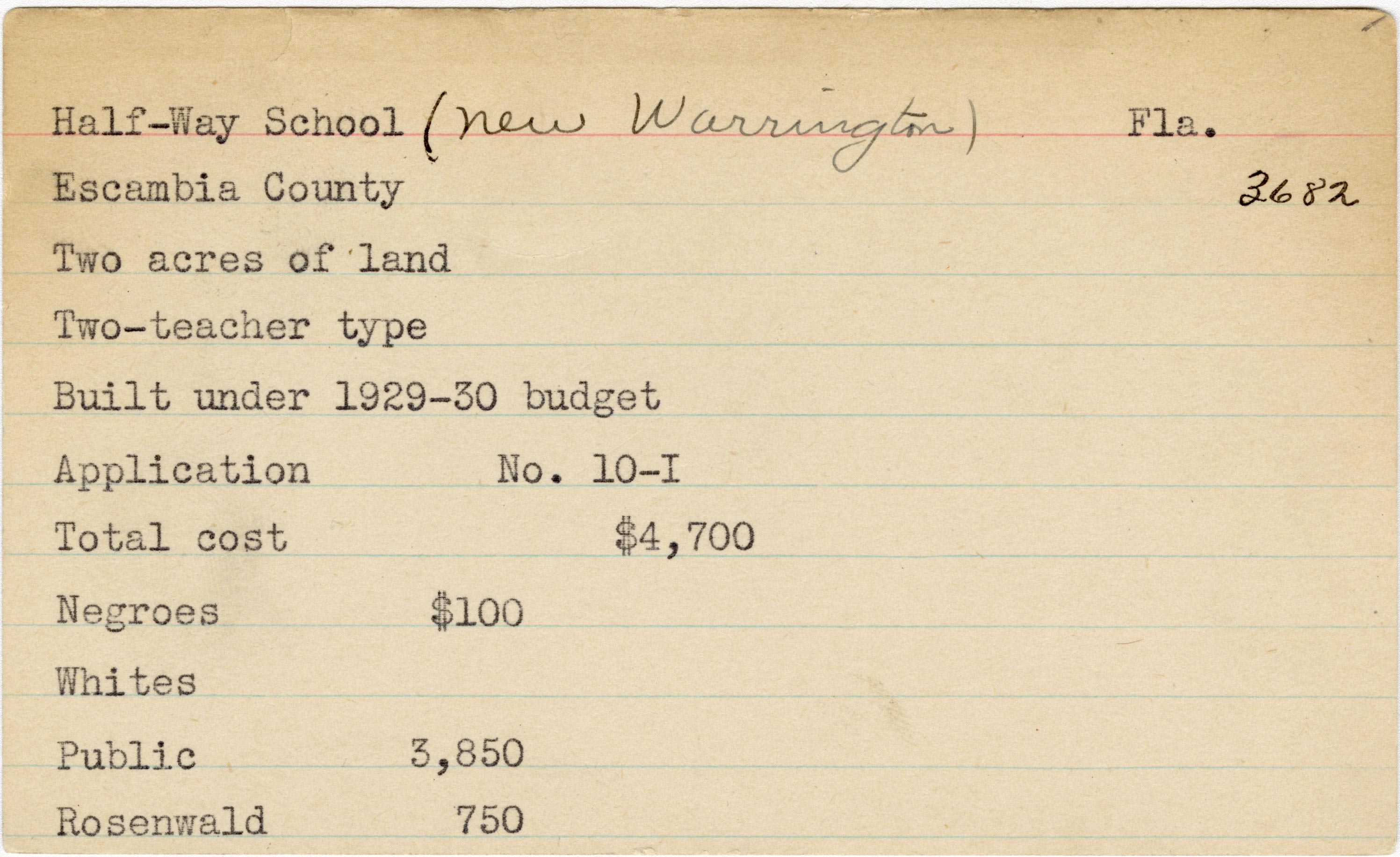 - School card from the Rosenwald Fund for Half-Way School in Escambia County, Florida