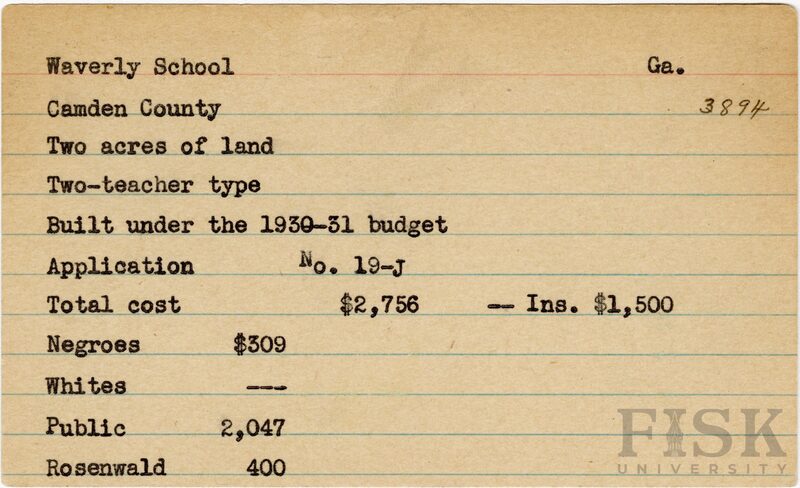 - Julius Rosenwald Fund--Buildings, African American schools--History--20th century, African American schools -- Waverly School