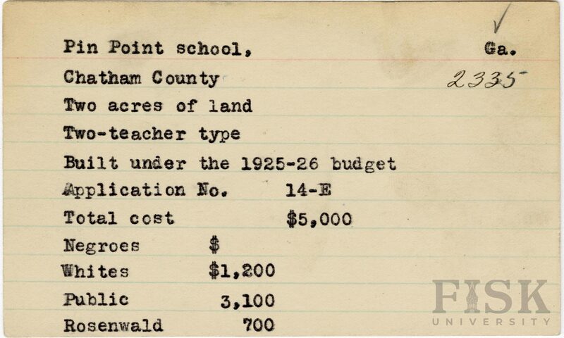 - School card from Rosenwald Fund for Pin Point School in Chatham County, Georgia