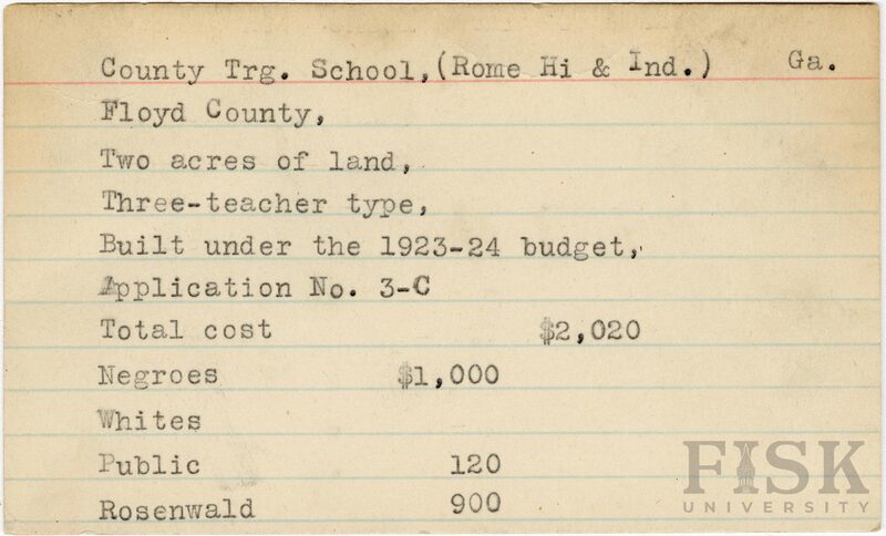 - School card from Rosenwald Fund for County Training School in Floyd County, Georgia