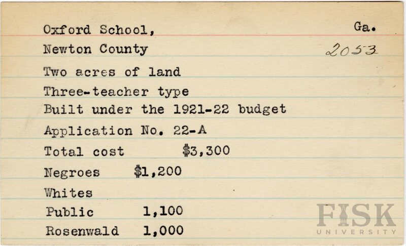 - School card from Rosenwald Fund for Oxford School in Newton County, Georgia