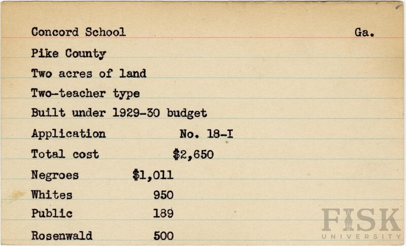 - School card from Rosenwald Fund for Concord School in Pike County, Georgia