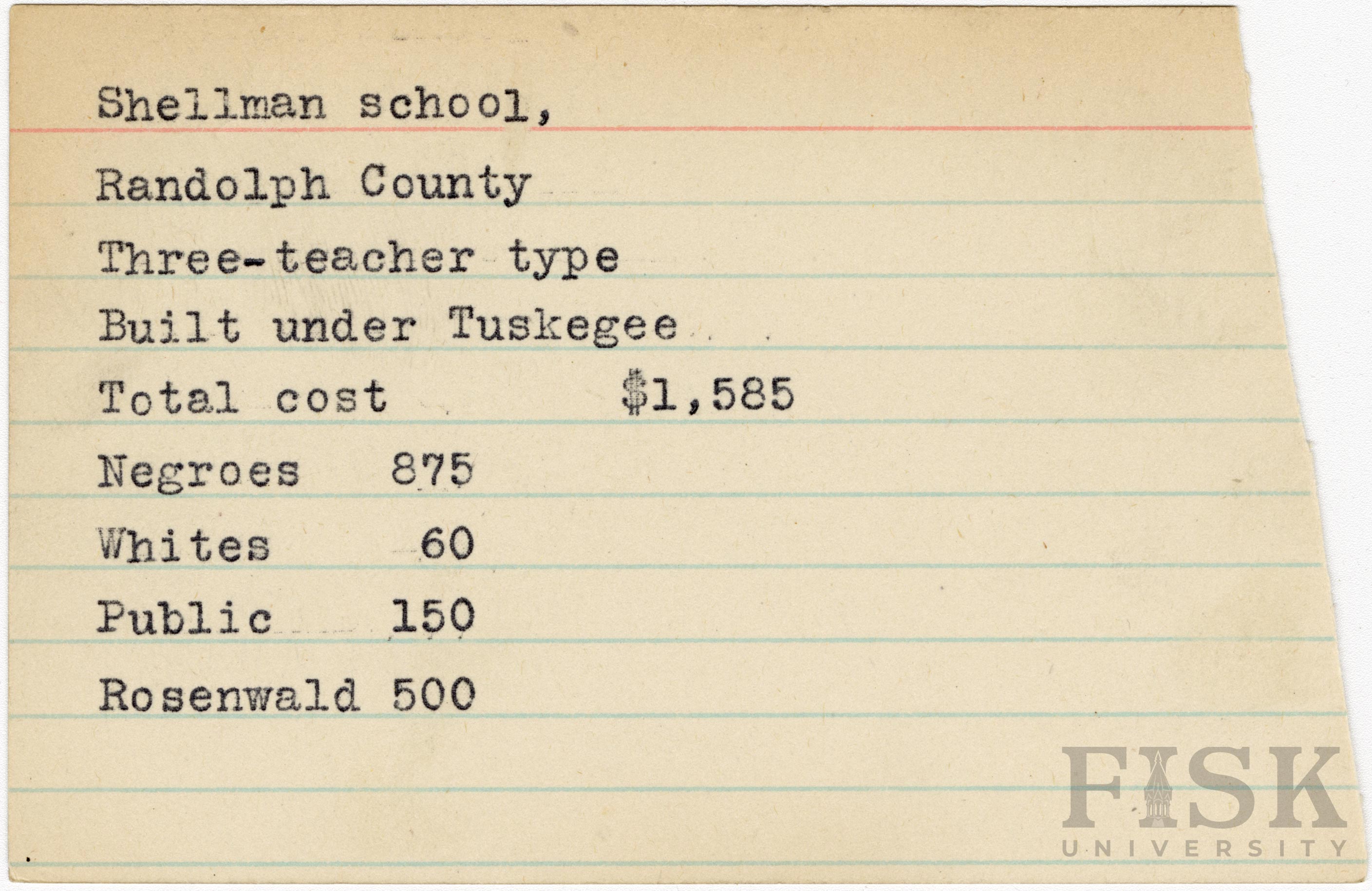 - School card from Rosenwald Fund for Shellman School in Randolph County, Georgia