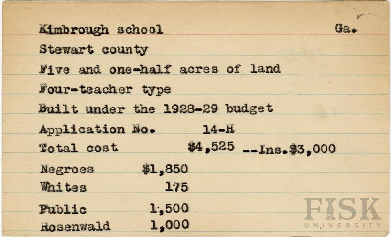 - Rosenwald Fund Card File, The Julius Rosenwald Fund Archives, 1918-1948, John Hope and Aurelia E. Franklin Library