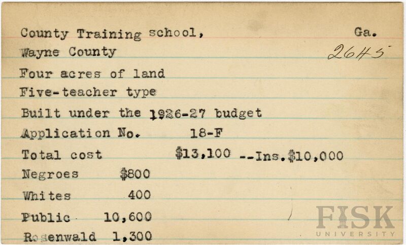 - Rosenwald Fund Card File, The Julius Rosenwald Fund Archives, 1918-1948, John Hope and Aurelia E. Franklin Library