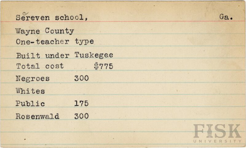 - Rosenwald Fund Card File, The Julius Rosenwald Fund Archives, 1918-1948, John Hope and Aurelia E. Franklin Library