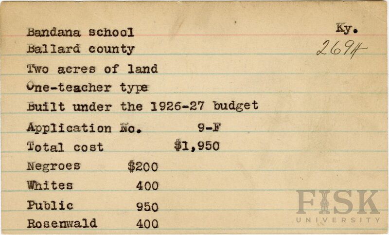 - School card from Rosenwald Fund for Bandana School in Ballard County, Kentucky