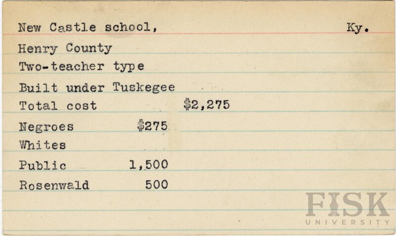 - School card from Rosenwald Fund for New Castle School in Henry County, Kentucky