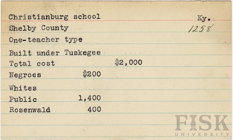 - School card from Rosenwald Fund for Christianburg School in Shelby County, Kentucky