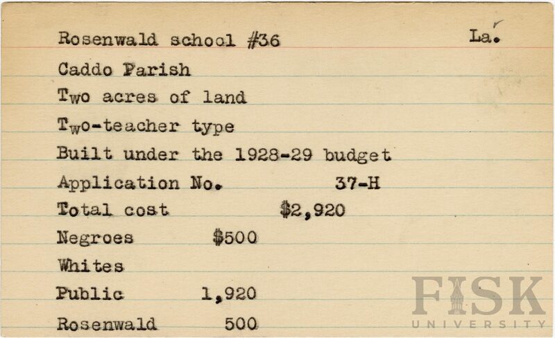 - School card from the Rosenwald Fund for Rosenwald School No. 36 in Caddo Parish, Louisiana
