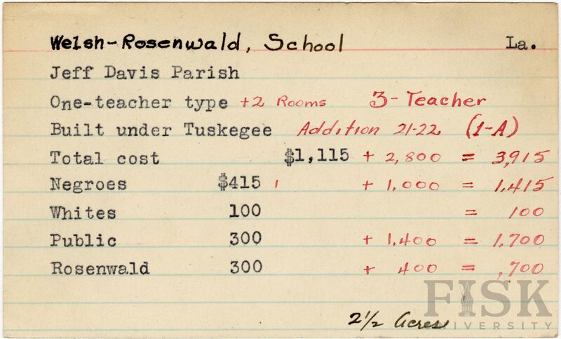 - Rosenwald Fund Card File, The Julius Rosenwald Fund Archives, 1918-1948, John Hope and Aurelia E. Franklin Library