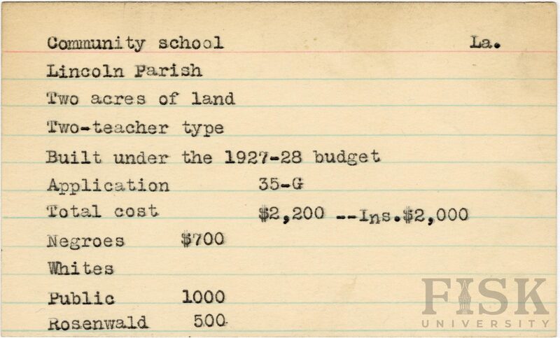 - Rosenwald Fund Card File, The Julius Rosenwald Fund Archives, 1918-1948, John Hope and Aurelia E. Franklin Library