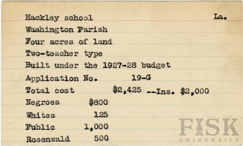 - Rosenwald Fund Card File, The Julius Rosenwald Fund Archives, 1918-1948, John Hope and Aurelia E. Franklin Library